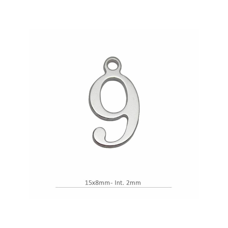Colgante número 9 en plata de ley 925. Fabricado en España.