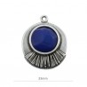 Colgante con asa en zamak con baño de plata y resina en color azul. Le recomendamos pegar ambas piezas con nuestro pegamento especial para joyería con referencia 7405.