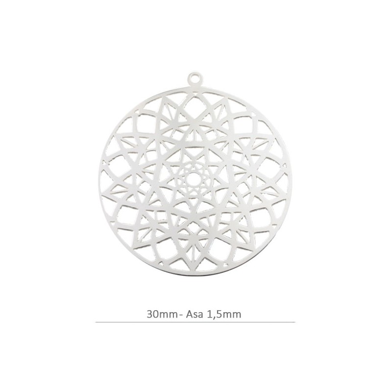 Colgante mandala geométrica en plata de ley 925, fabricado en España.