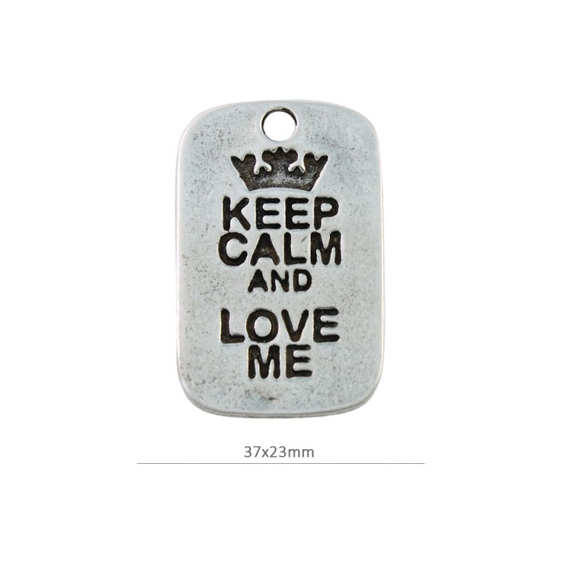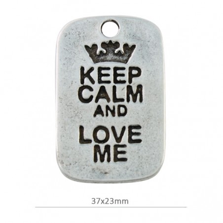 - Colgante chapa "Keep calm and love me" en zamak baño plata. - El precio es por unidad.