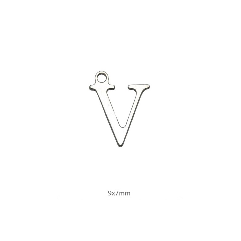 Colgante mini letra V en plata de ley 925. Fabricado en España.