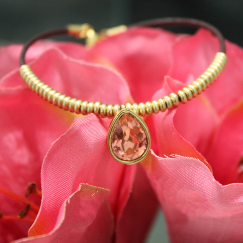 Material: Zamak con baño de oro + cristal Swarovski en color Rose Peach.