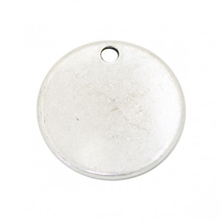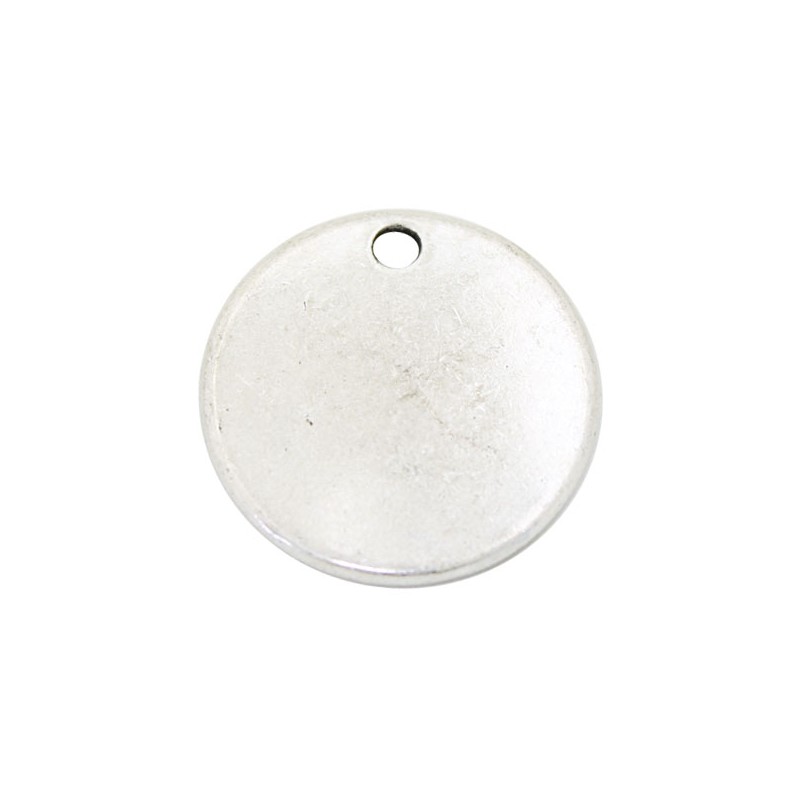 - Colgante liso para grabar en zamak con baño de plata. - El tamaño es de 25 milímetros. - El precio es por unidad.