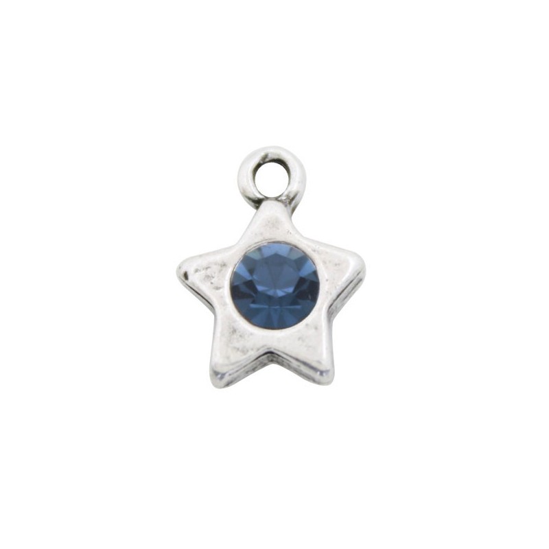 Colgante estrella con asa en zamak con baño de plata y cristal en color Montana. Le recomendamos pegar ambas piezas con nuestro pegamento especial para joyería con referencia 7405.