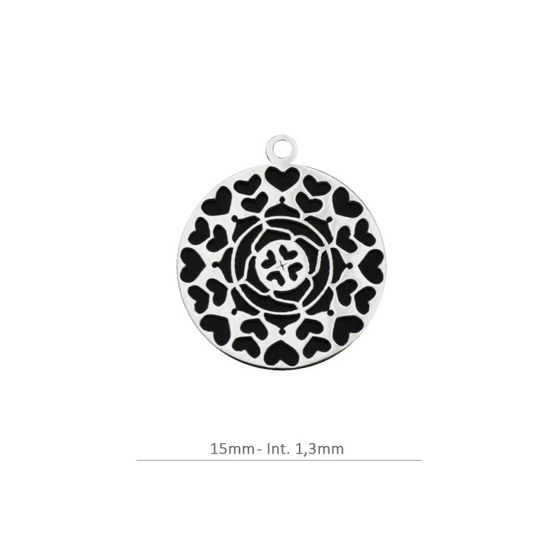 Colgante mandala corazones y flor en plata de ley 925, fabricado en España.