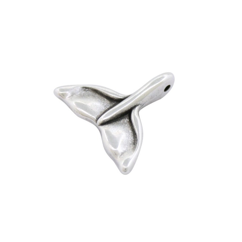 - Colgante cola de ballena en zamak con baño de plata. - El tamaño es de 18 milímetros y el taladro es de 1 milímetro. - El precio es por unidad.