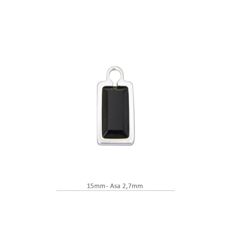 Colgante rectangular con cristal Swarovski en color Jet con asa en plata de ley 925 fabricado en España.