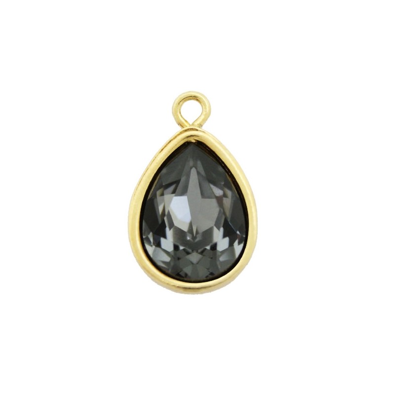 Colgante con asa en zamak con baño de oro con cristal lágrima Swarovski en color Crystal Silver Night 14x10 mm. Le recomendamos pegar ambas piezas con nuestro pegamento especial para joyería con referencia 7405, ya que no vienen pegadas.