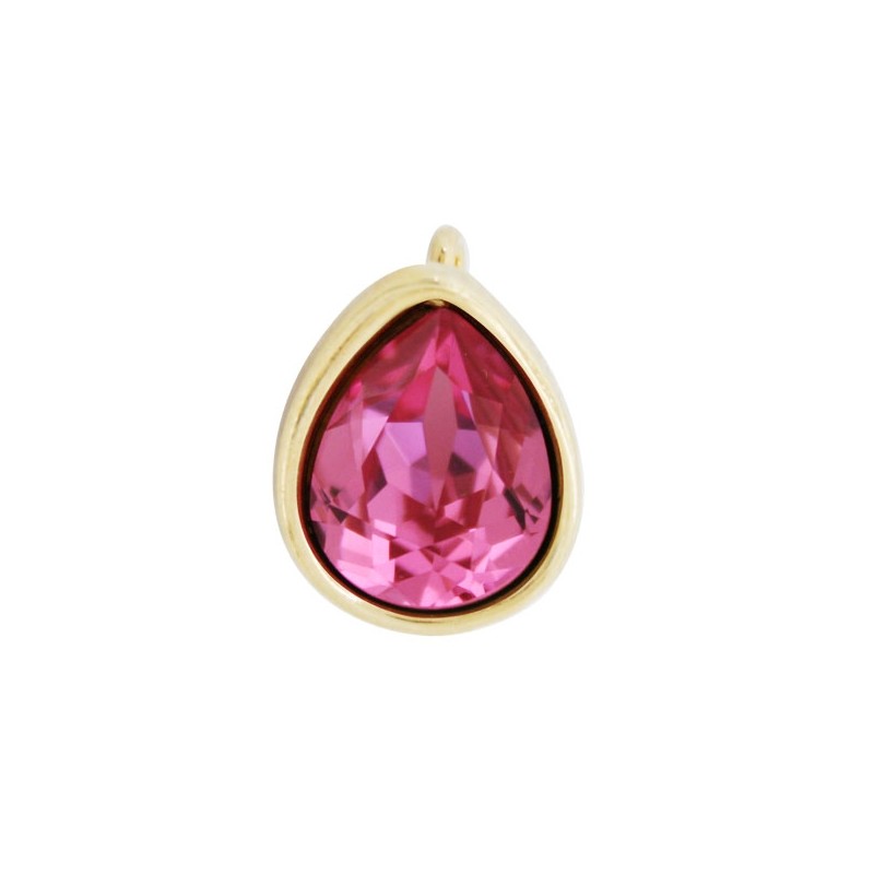 Colgante con asa en zamak con baño de oro con cristal lágrima Swarovski en color Rose14x10 mm. Le recomendamos pegar ambas piezas con nuestro pegamento especial para joyería con referencia 7405, ya que no vienen pegadas.