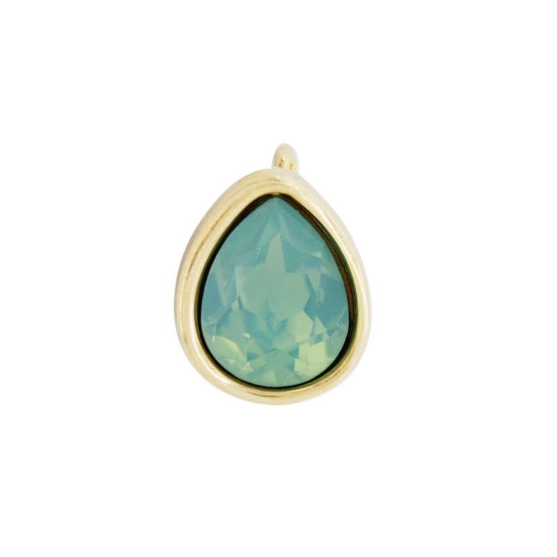 Colgante con asa en zamak con baño de oro con cristal lágrima Swarovski en color Pacific Opal14x10 mm. Le recomendamos pegar ambas piezas con nuestro pegamento especial para joyería con referencia 7405, ya que no vienen pegadas.