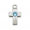 - Colgante cruz con cristal de Swarovski en zamak con baño de plata. - El tamaño es de 22x12 milímetros, el cristal es de 4 milímetros y tiene una anilla de 2 milímetros. - El precio es por bolsa y la bolsa contiene una unidad.