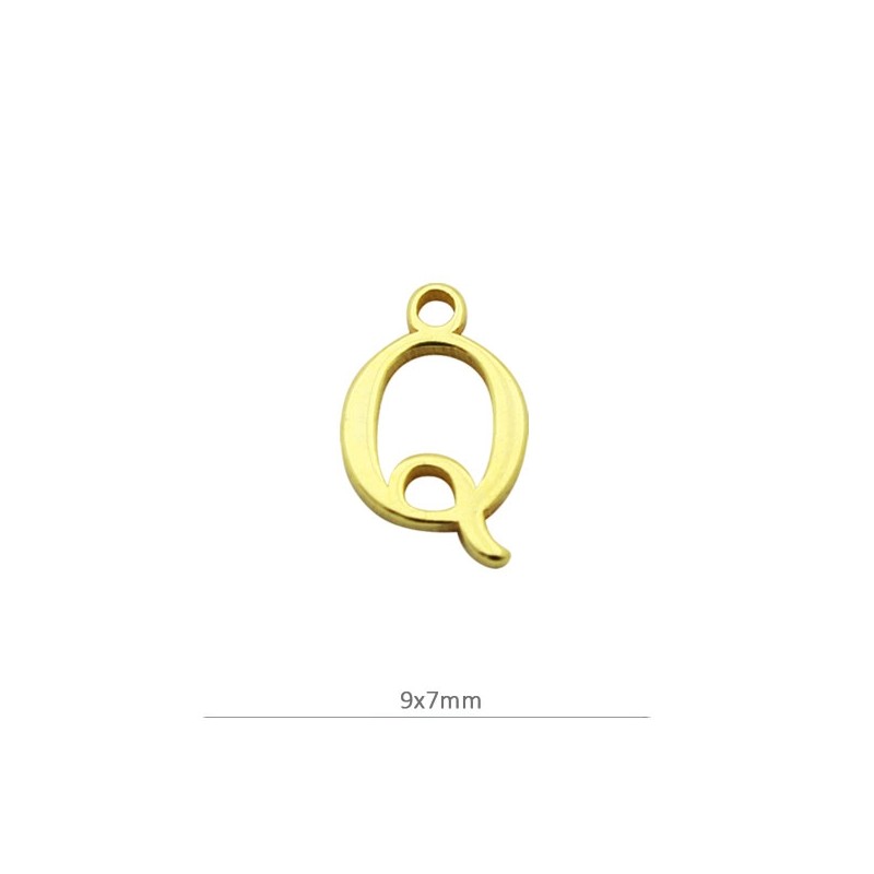 Colgante mini letra Q en plata de ley 925, bañado en oro de 18k. Fabricado en España.