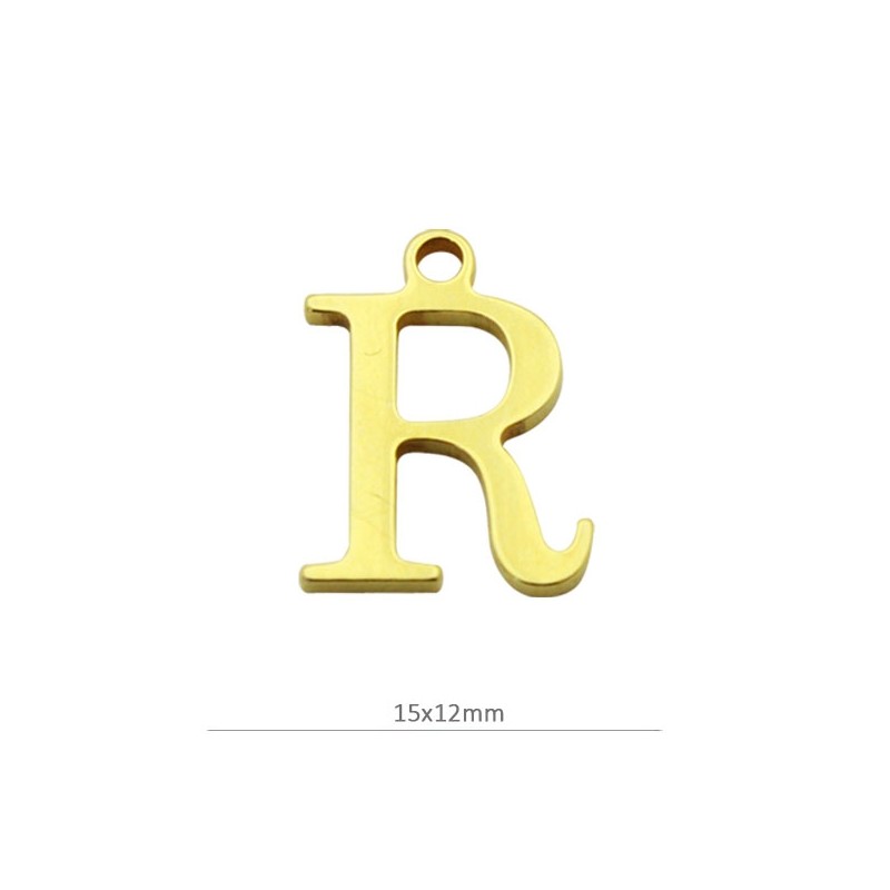 Colgante letra R en plata de ley 925 con baño de oro 18k. Fabricado en España.