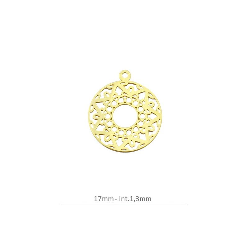 Colgante pequeño mandala en plata de ley 925, bañado en oro de 18k. Fabricado en España.