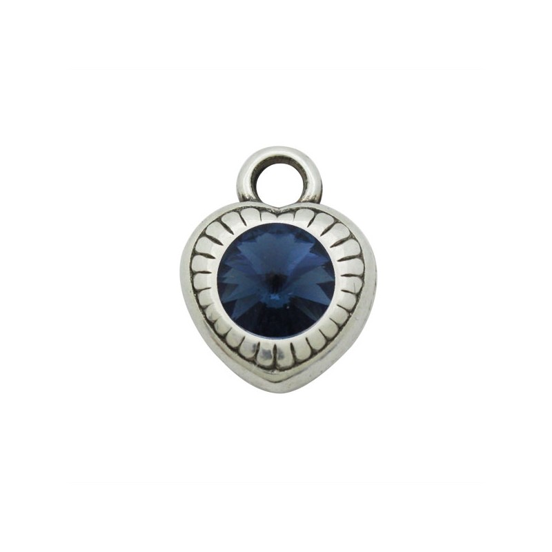 Colgante corazón con asa en zamak con baño de plata y cristal en color Montana. Le recomendamos pegar ambas piezas con nuestro pegamento especial para joyería con referencia 7405.