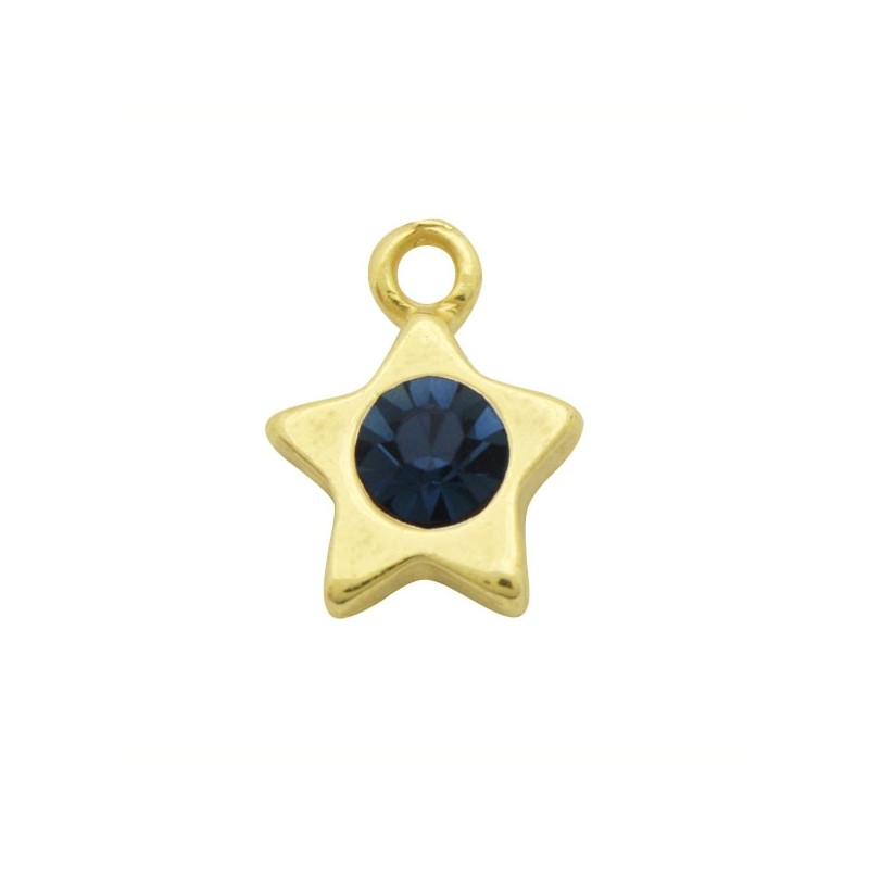 Colgante estrella con asa en zamak con baño de oro y cristal en color Montana. Le recomendamos pegar ambas piezas con nuestro pegamento especial para joyería con referencia 7405.