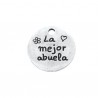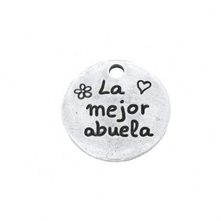 - Colgante "La mejor abuela" en zamak con baño de plata. - Diámetro 27mm y el taladro es de 3,5 milímetros. - El precio es por unidad.