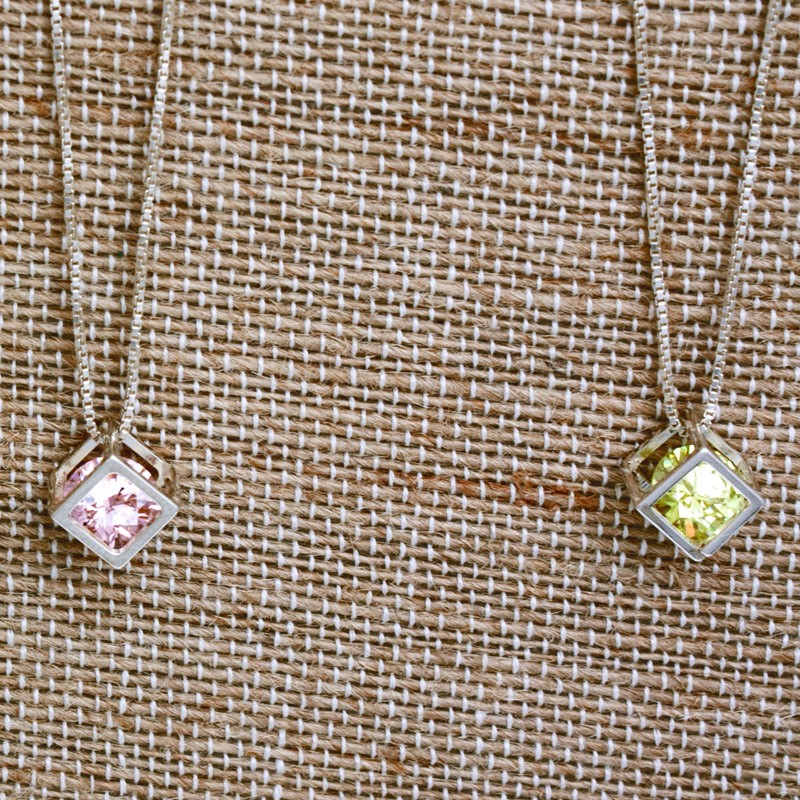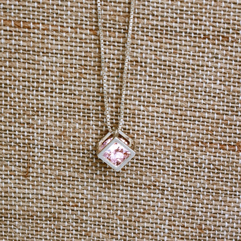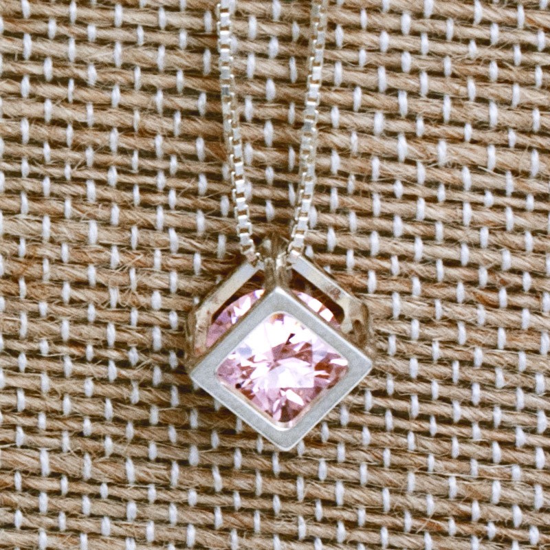 Colgante cubo con circonita en color Rose en plata de ley 925. Fabricado en España.