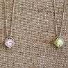 Colgante cubo con circonita en color Peridot en plata de ley 925. Fabricado en España.