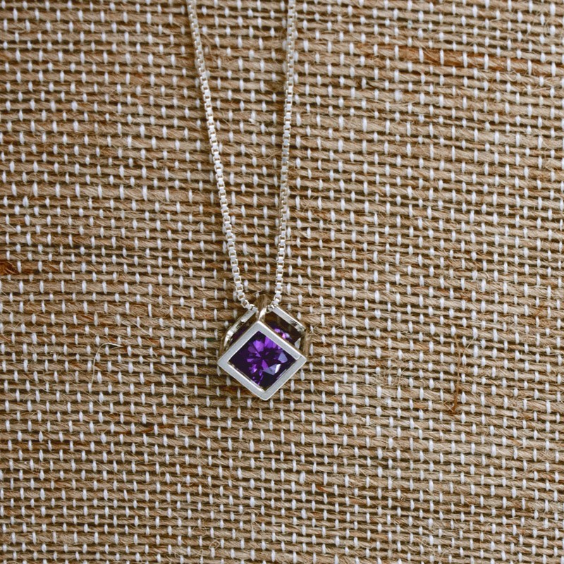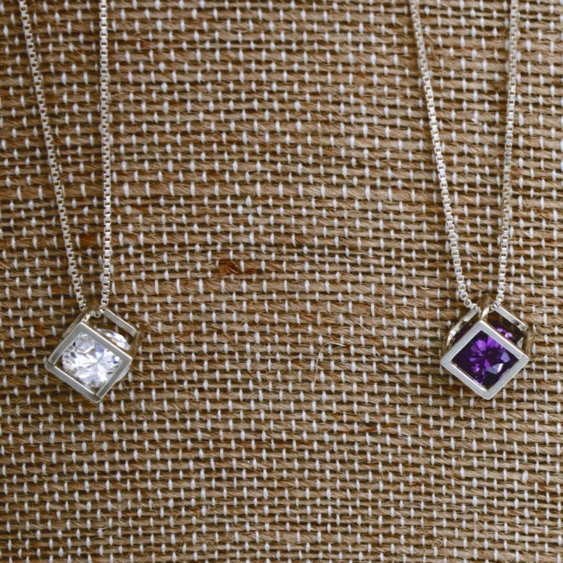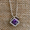 Colgante cubo con circonita en color Tanzanite en plata de ley 925. Fabricado en España.