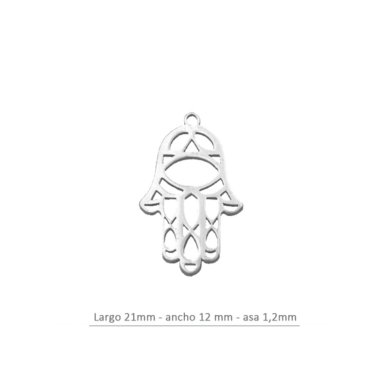 Colgante mano de fátima con asa en plata de ley 925. Fabricado en España.