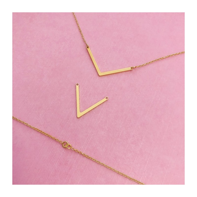 Colgante ángulo agudo con dos asas en plata de ley 925 con baño de oro 18k. fabricado en España.