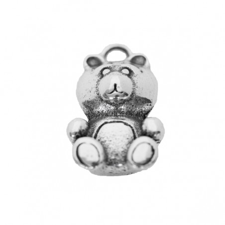 - Colgante oso para llavero en zamak baño plata. - Tamaño: 30mm agujero de 5mm. - El precio es por unidad.