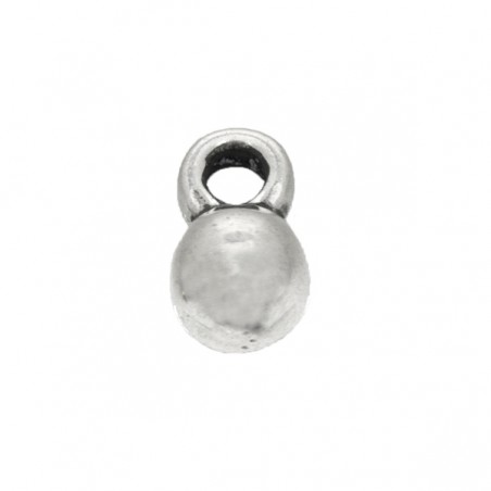 - Colgantito bola en zamak con baño de plata. - El tamaño es de 5 milímetros. - La bolsa contiene 10 unidades y el precio es por bolsa.