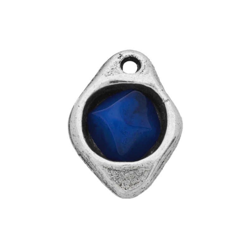 Colgante mediano con taladro en zamak con baño de plata y resina en color azul . Le recomendamos pegar ambas piezas con nuestro pegamento especial para joyería con referencia 7405.