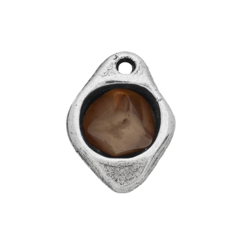 Colgante mediano con taladro en zamak con baño de plata y resina en color champán. Le recomendamos pegar ambas piezas con nuestro pegamento especial para joyería con referencia 7405.
