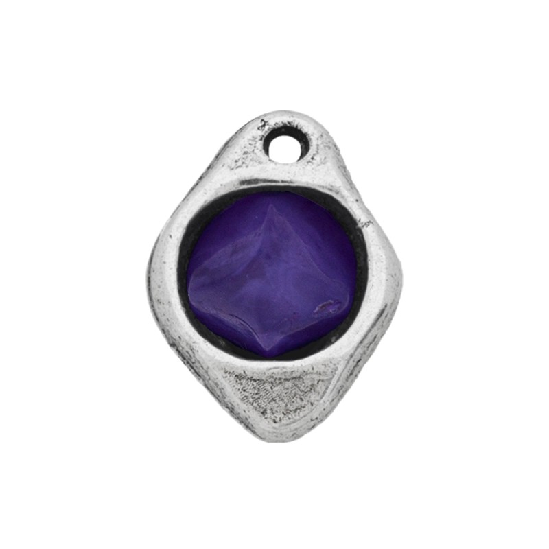 Colgante mediano con taladro en zamak con baño de plata y resina en color morado. Le recomendamos pegar ambas piezas con nuestro pegamento especial para joyería con referencia 7405.