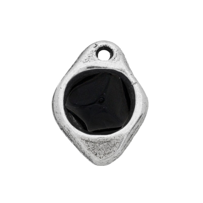 Colgante mediano con taladro en zamak con baño de plata y resina en color negro. Le recomendamos pegar ambas piezas con nuestro pegamento especial para joyería con referencia 7405.