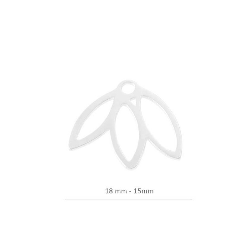 Bolsa de 10 uds. Diámetro 5 mm. Hilo 0,8 mm.Colgante tres hojas de 18 mm en plata baño oro