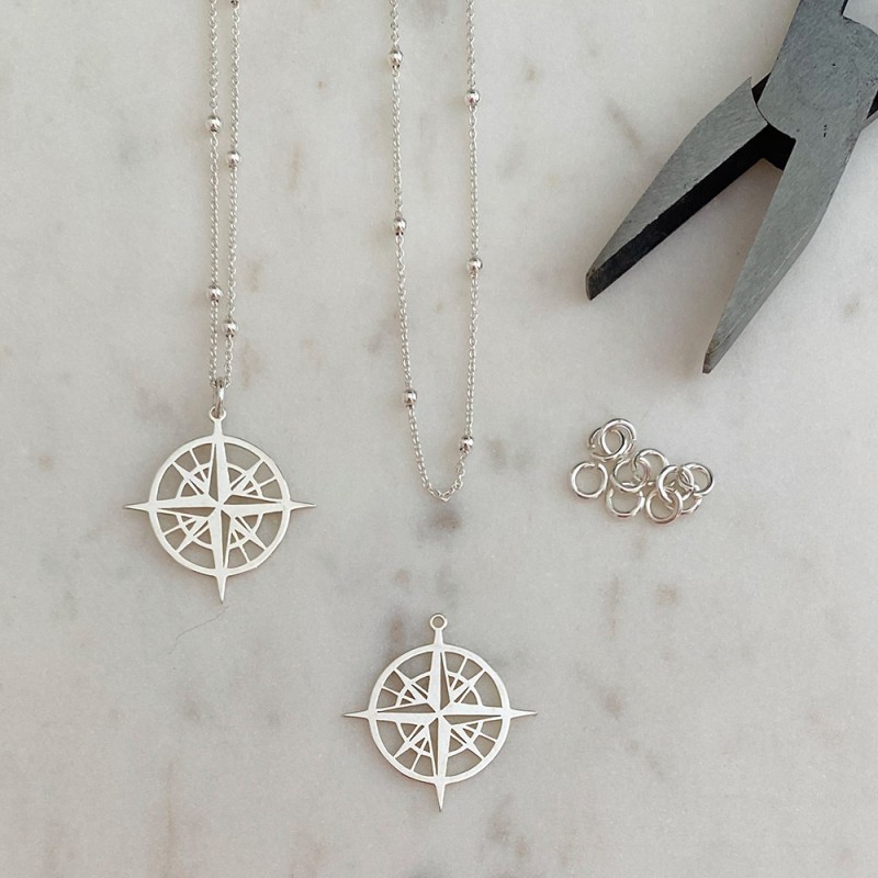 Colgante brújula con asa en plata de ley 925. Fabricado en España.