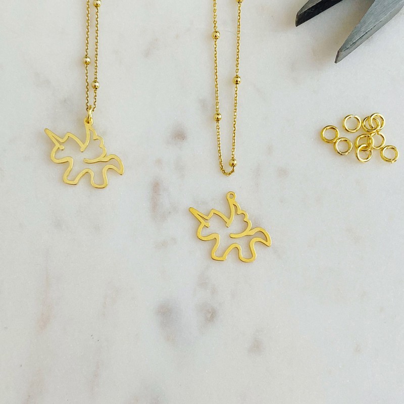 Colgante unicornio en plata de ley 925, bañado en oro de 18k. Fabricado en España.