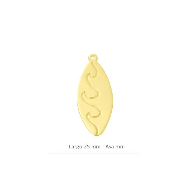 Colgante taba de surf en plata de ley 925, bañado en oro de 18k. Fabricado en España.