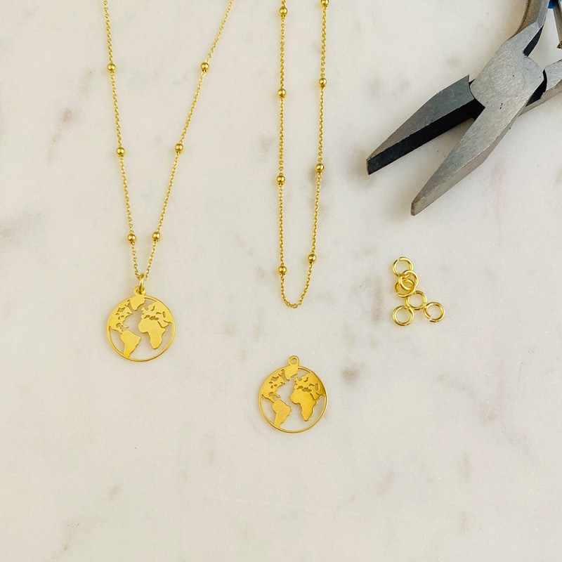 Colgante del mundo en plata de ley 925, bañado en oro de 18k. Fabricado en España.