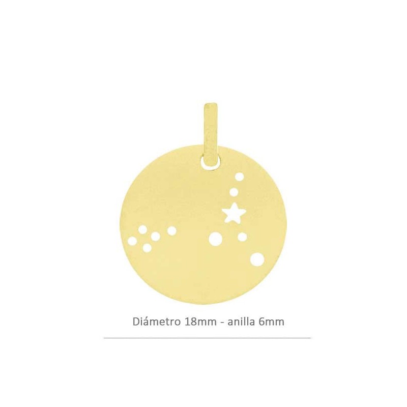 Colgante constelación horóscopo Piscis redondo en plata de ley 925 bañada en oro de 18k. Fabricado en España.