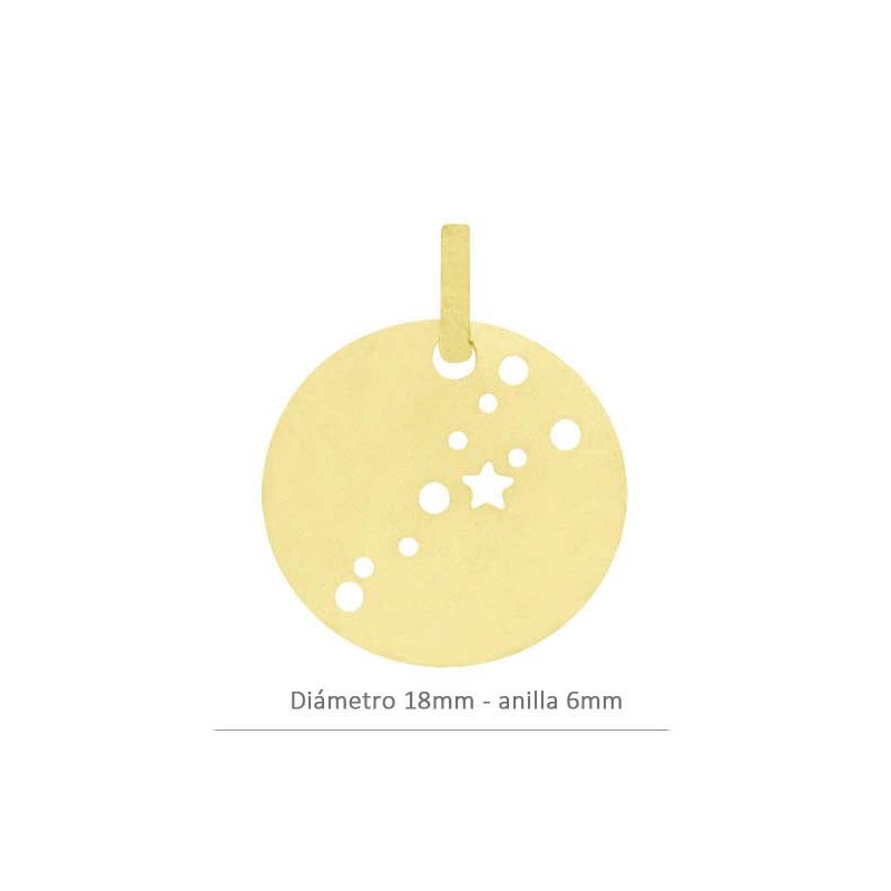 Colgante constelación horóscopo Tauro redondo en plata de ley 925 bañada en oro de 18k. Fabricado en España.