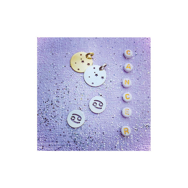 Colgante constelación horóscopo Cáncer redondo en plata de ley 925 bañada en oro de 18k. Fabricado en España.