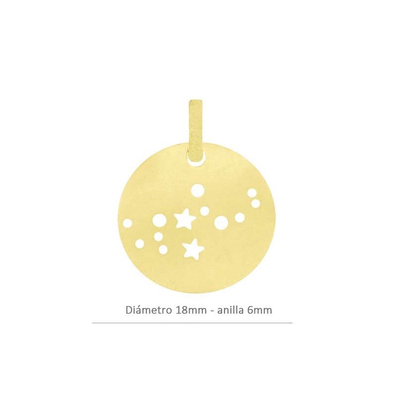 Colgante constelación horóscopo Virgo redondo en plata de ley 925 bañada en oro de 18k. Fabricado en España.