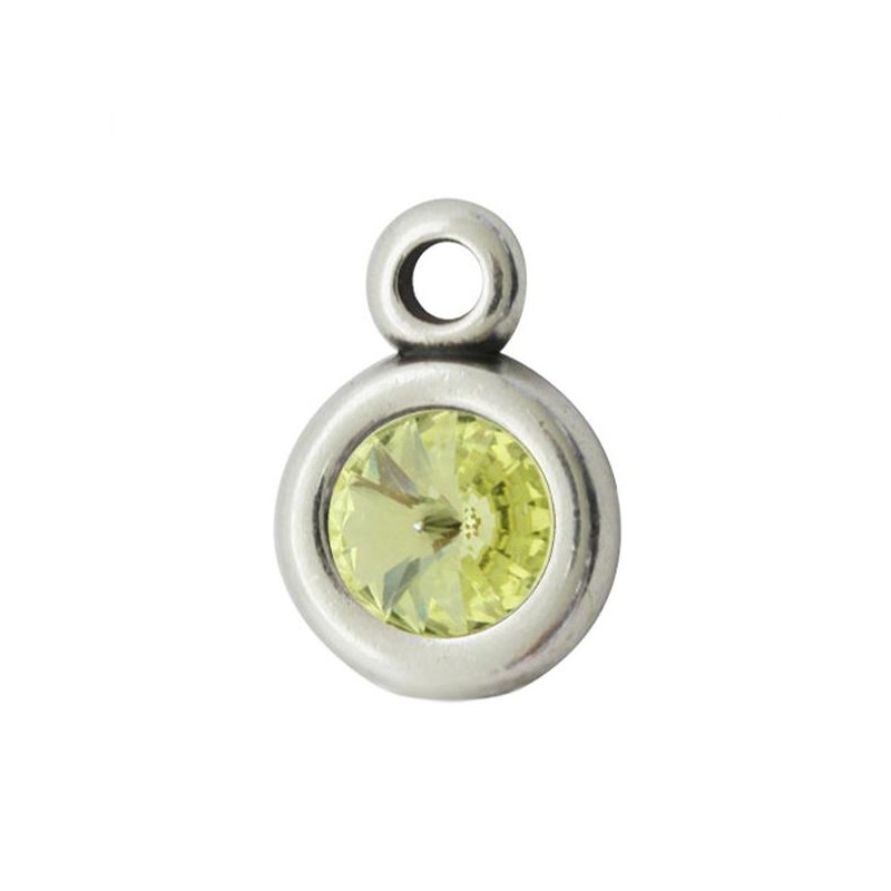 - Entrepieza macramé en zamak baño plata con cristal de colores. - El tamaño es de 23x13 milímetros y la anilla tiene un taladro de 2,5 milímetros. - El cristal está incluido y viene sin pegar a la pieza. - El precio es por unidad.