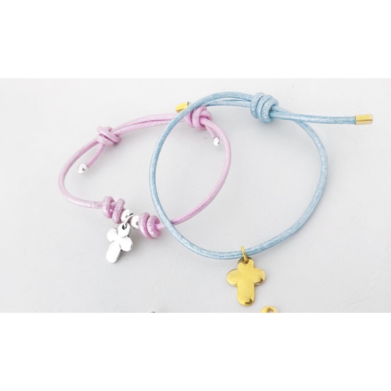 Kit pulsera cruz en zamak con cuero