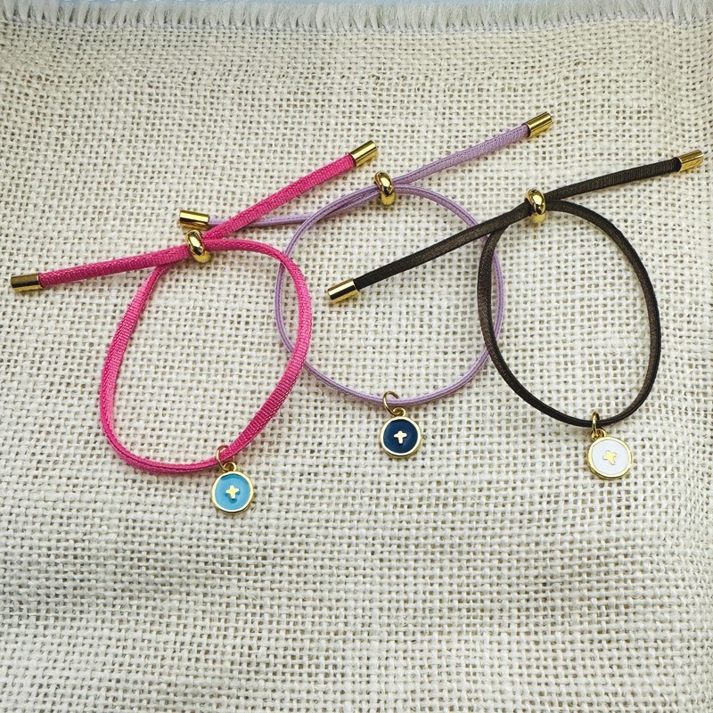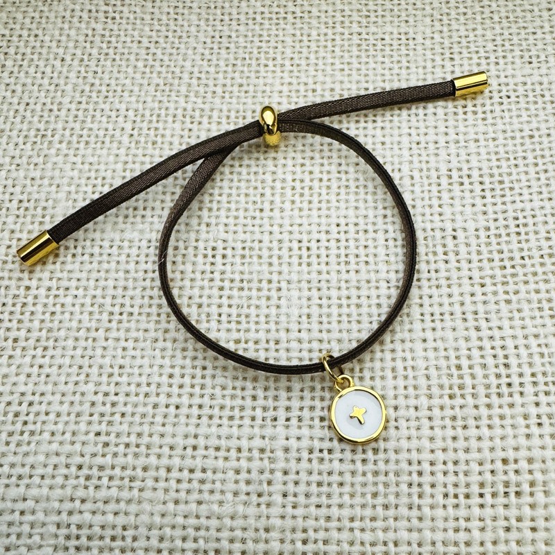 Kit pulsera cruz blanca en zamak baño oro con cordón