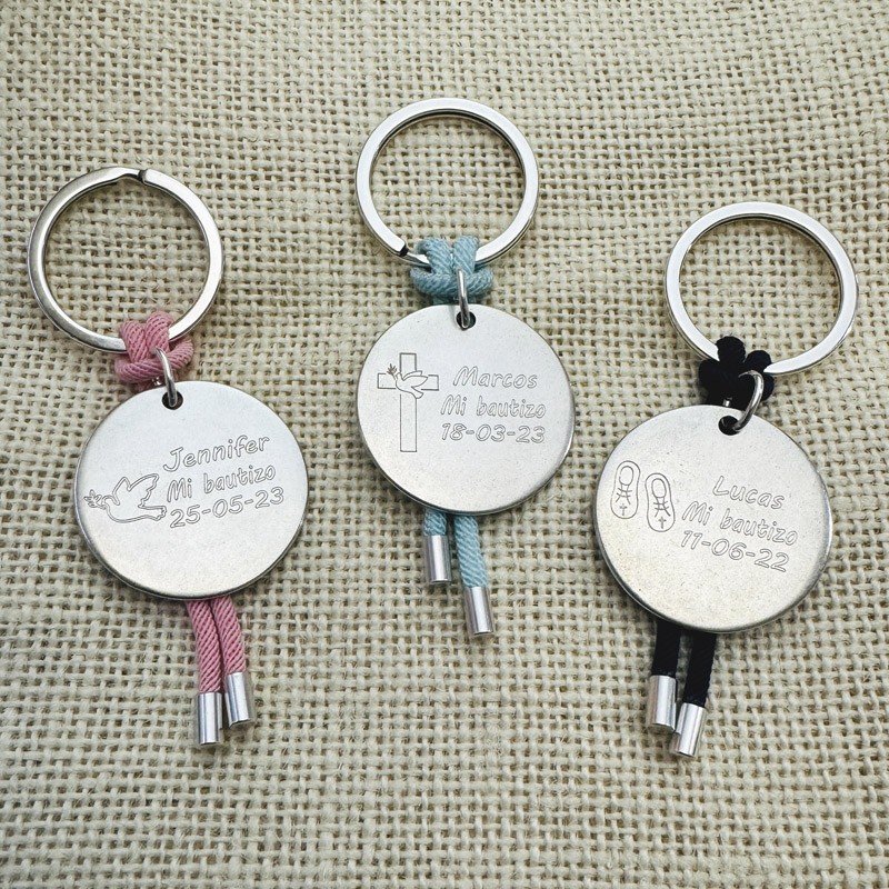 Kit llavero personalizado mi bautizo cruz con cordón en zamak.