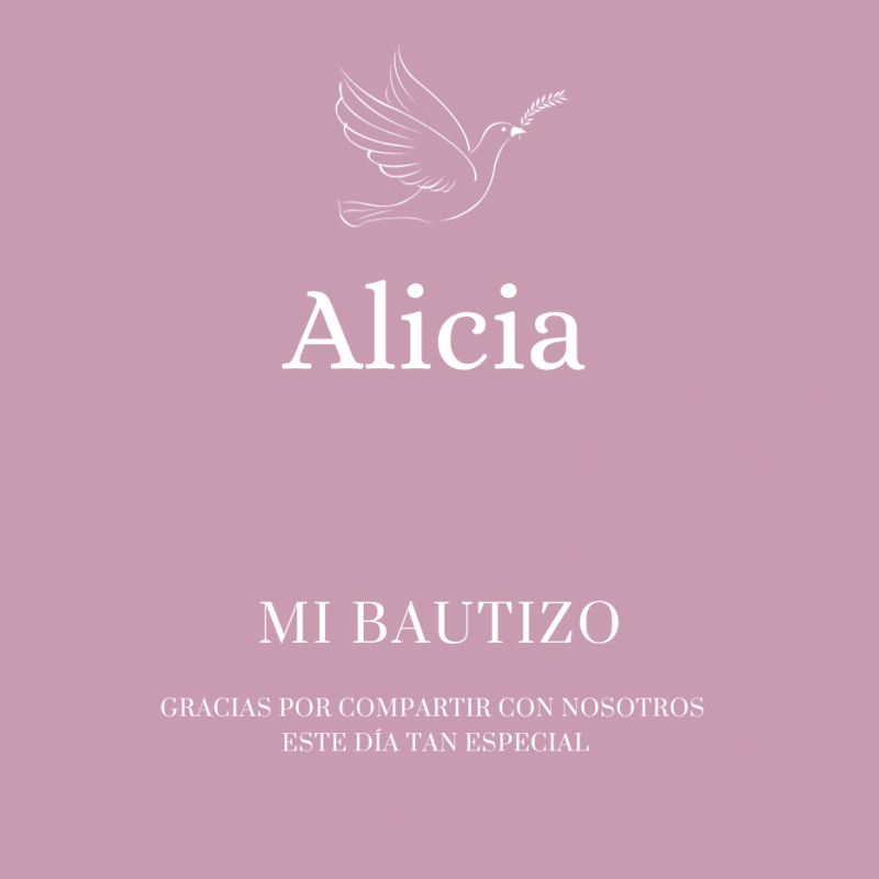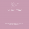 Tarjeta con diseño paloma peonía mi bautizo + bolsa