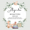 Tarjeta con diseño juguetes mi bautizo + bolsa
