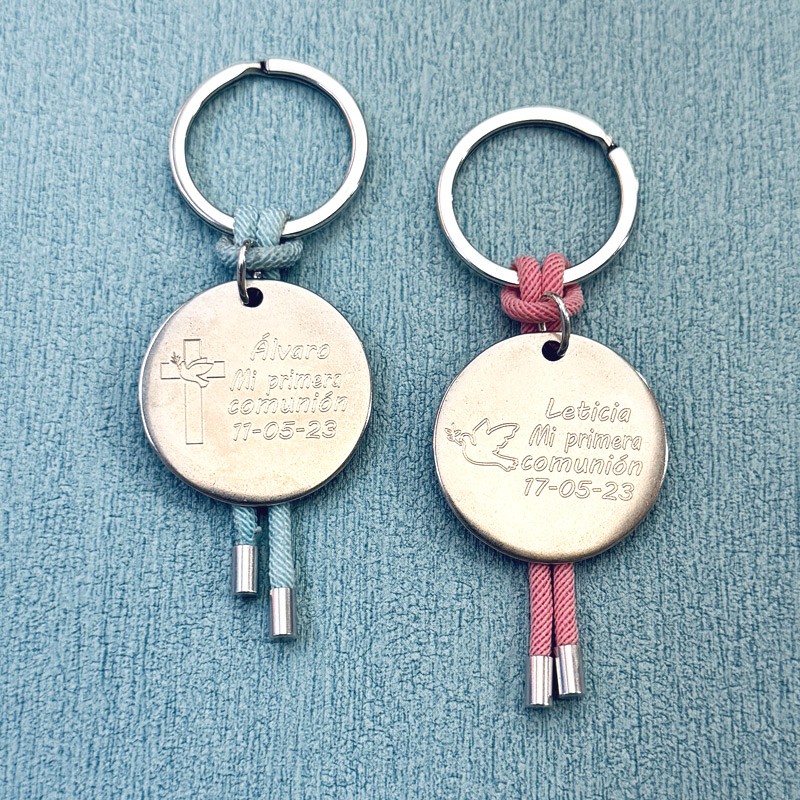 Kit llavero personalizado mi primera comunión cruz con cordón en zamak.