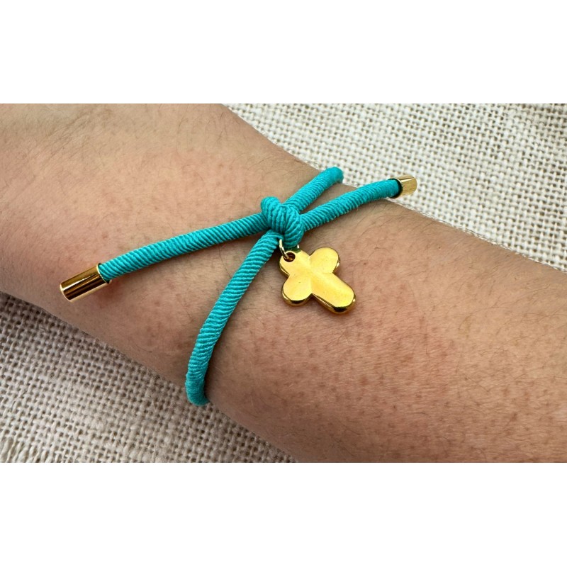 Sorprende a tus invitados creando a mano los detalles de tu fiesta de bautizo o comunión, regalándoles esta preciosa pulsera con colgante cruz que podrá llevar todos los días para recordar ese bonito día. El color que tiene el cordón en la foto es ocean.