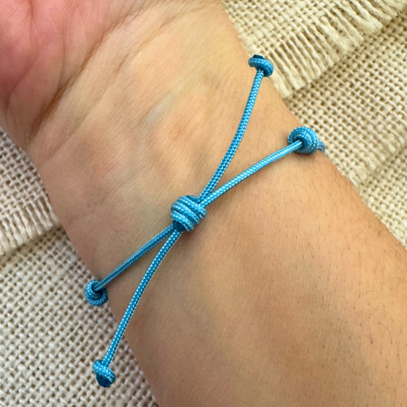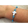 Sorprende a tus invitados creando a mano los detalles de tu fiesta de bautizo o comunión, regalándoles esta preciosa pulsera con colgante cruz que podrá llevar todos los días para recordar ese bonito día. El color que tiene el cordón en la foto es celeste.